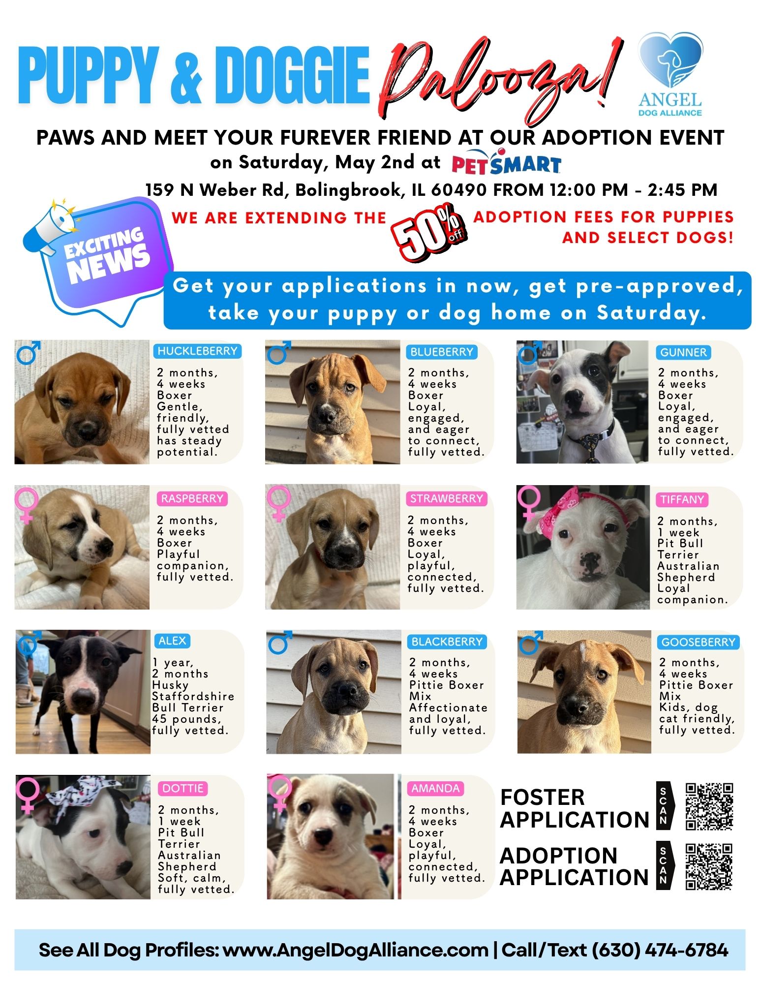 To RSVP and to see all adoptable dogs, please visit our website or AngelDogAllianceIL on Facebook. Kindly tell your friends, family, and community to help get the word out.